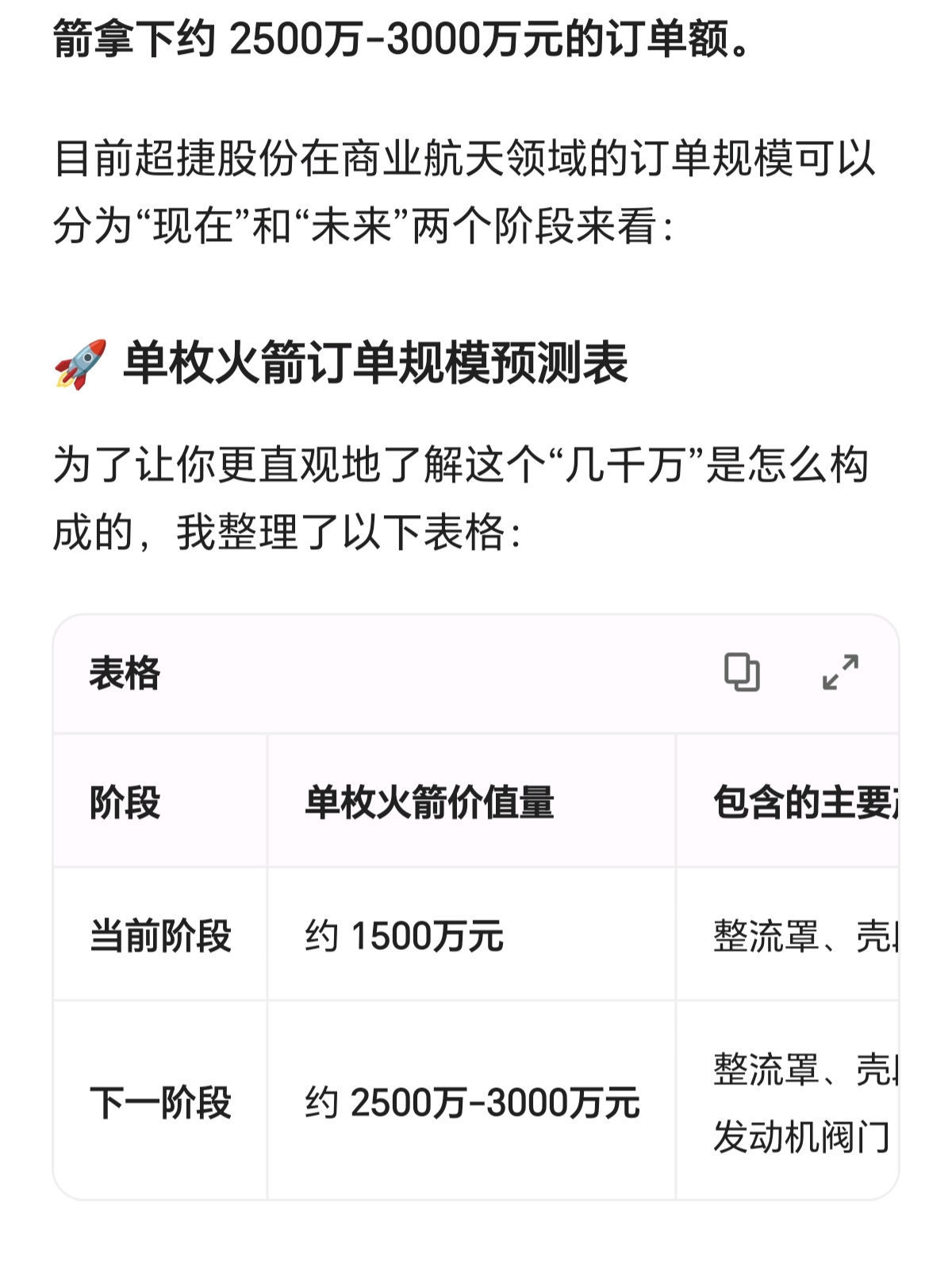 黑子说超捷股份就是打螺丝的,单枚火箭超捷股份就能拿到2500-3000万订单,还