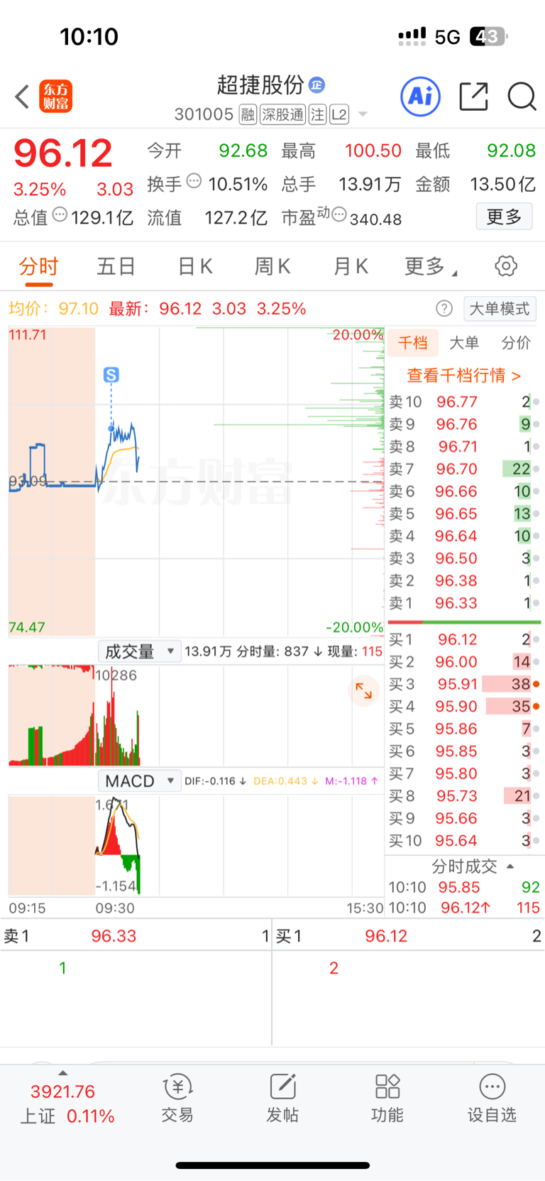 $超捷股份(SZ301005)$ 今天长教训了,别想再套我了,哈哈