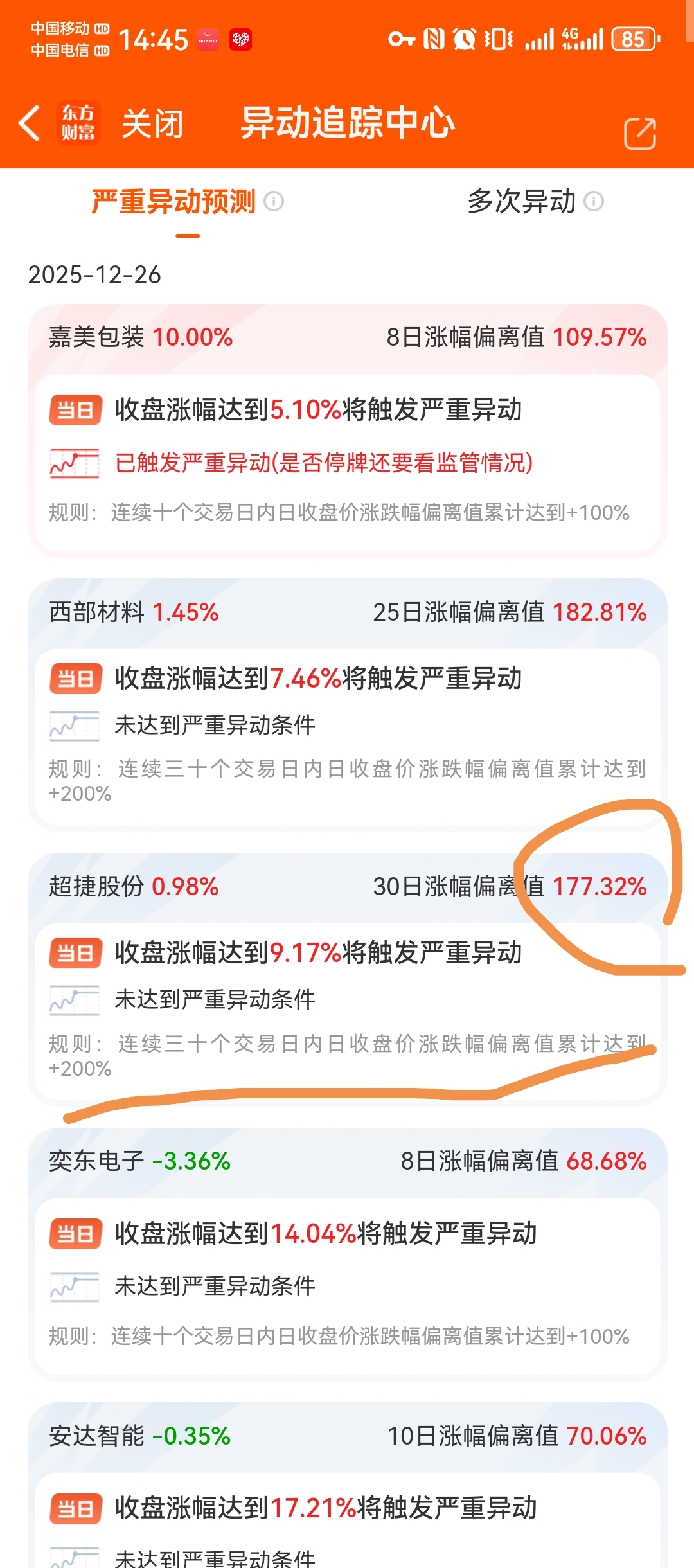 $超捷股份(SZ301005)$ 累计偏离值,离200%还有距离。为啥涨9%就会严重异动?不会看