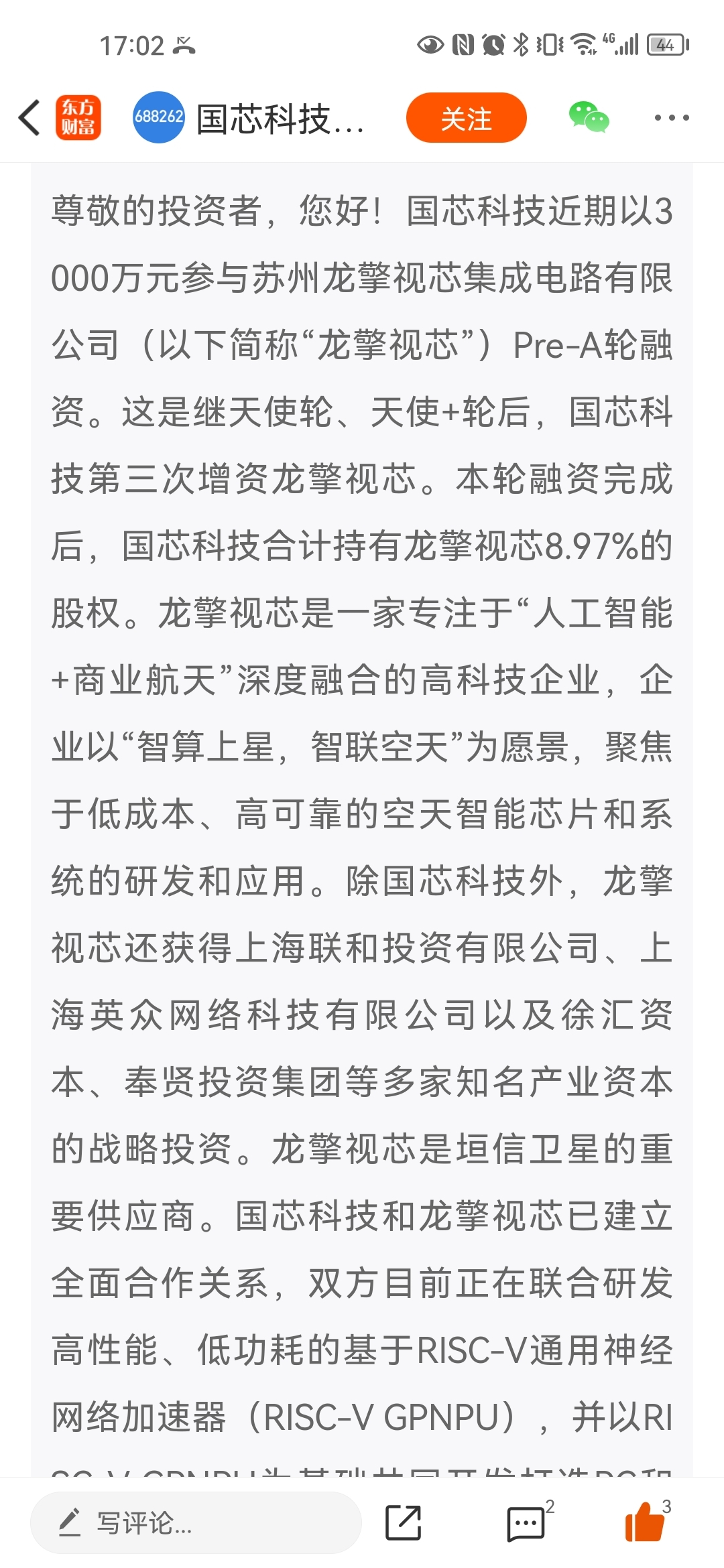 $超捷股份(SZ301005)$ 关注低位的国芯科技