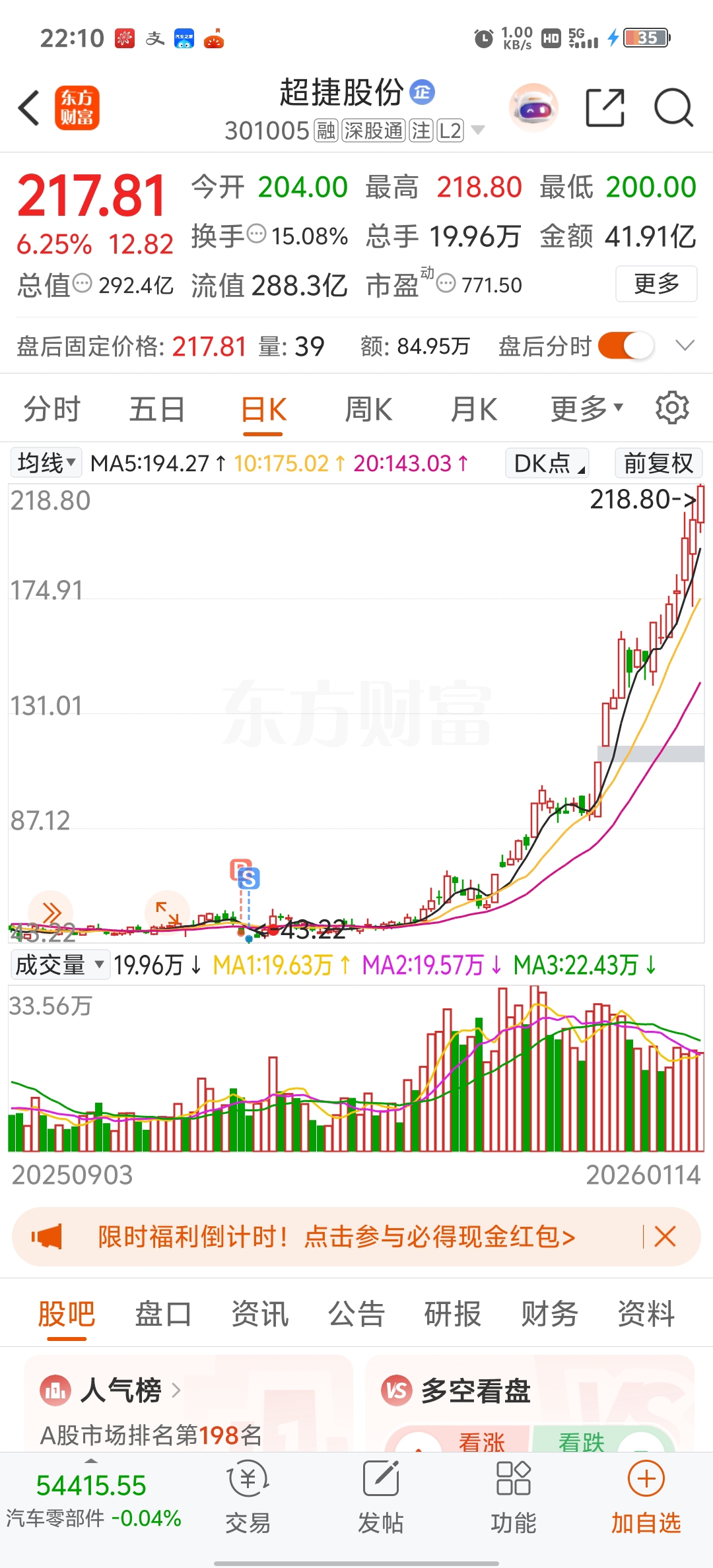$超捷股份(SZ301005)$ 终究是我可望而不及的了