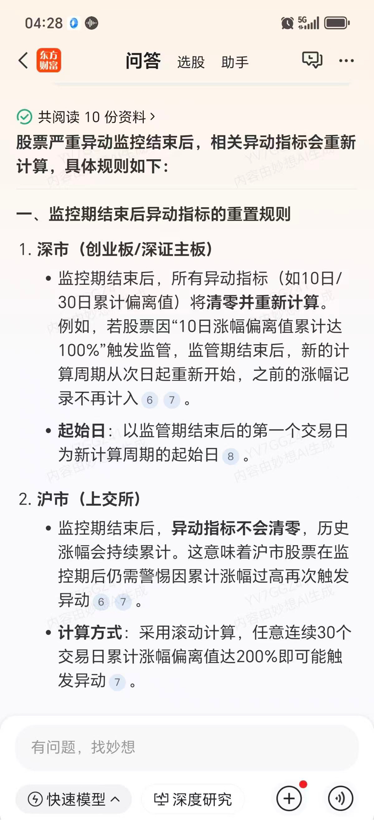 $超捷股份(SZ301005)$ 深交所股票严重异动监控结束后清零,上交所不清零