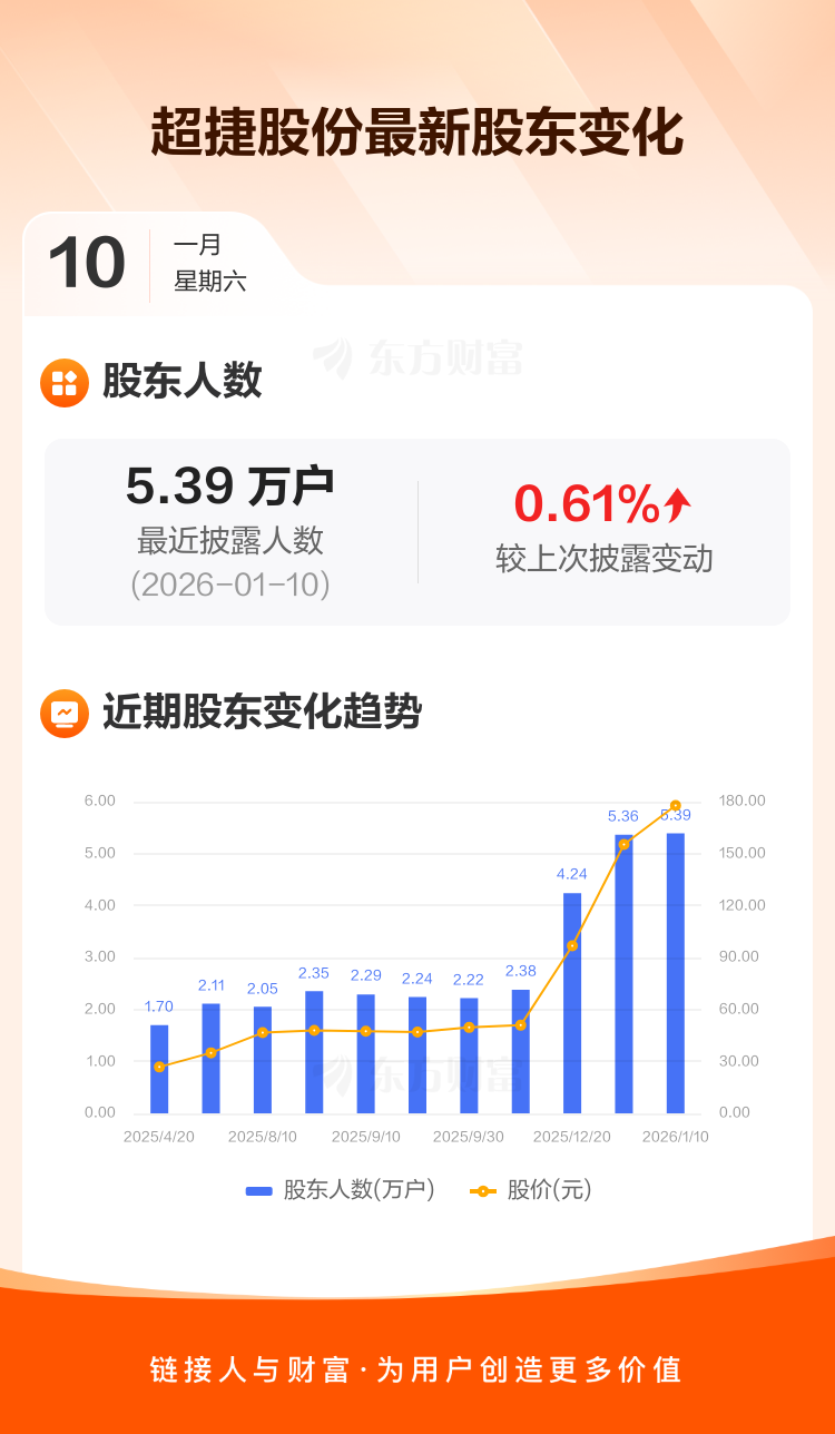 超捷股份:截至1月10日最新股东户数5.39万户,较上期增加0.61%