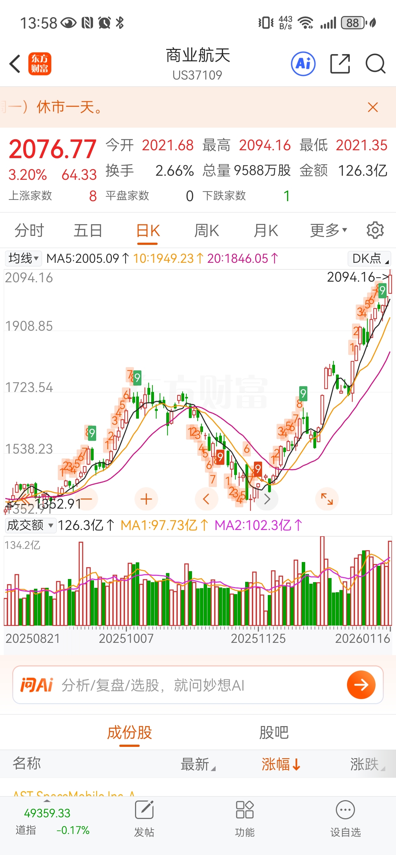 美国商业航天指数包括个股,都在创记录新高。个别人还在唱空中国航天。必须给予航天高