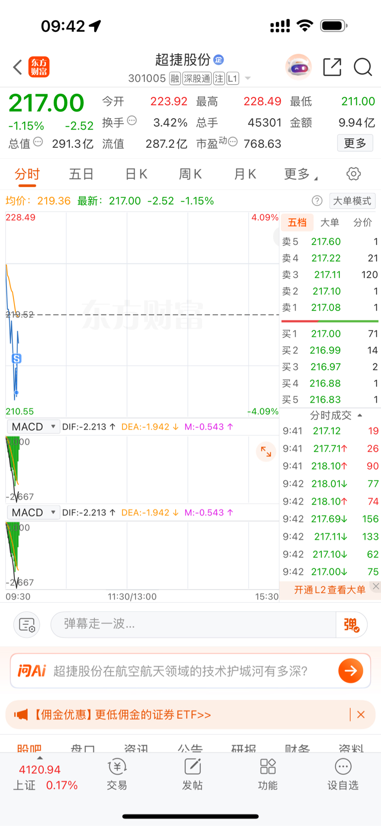 $超捷股份(SZ301005)$ 负3.1%卖了 最低点