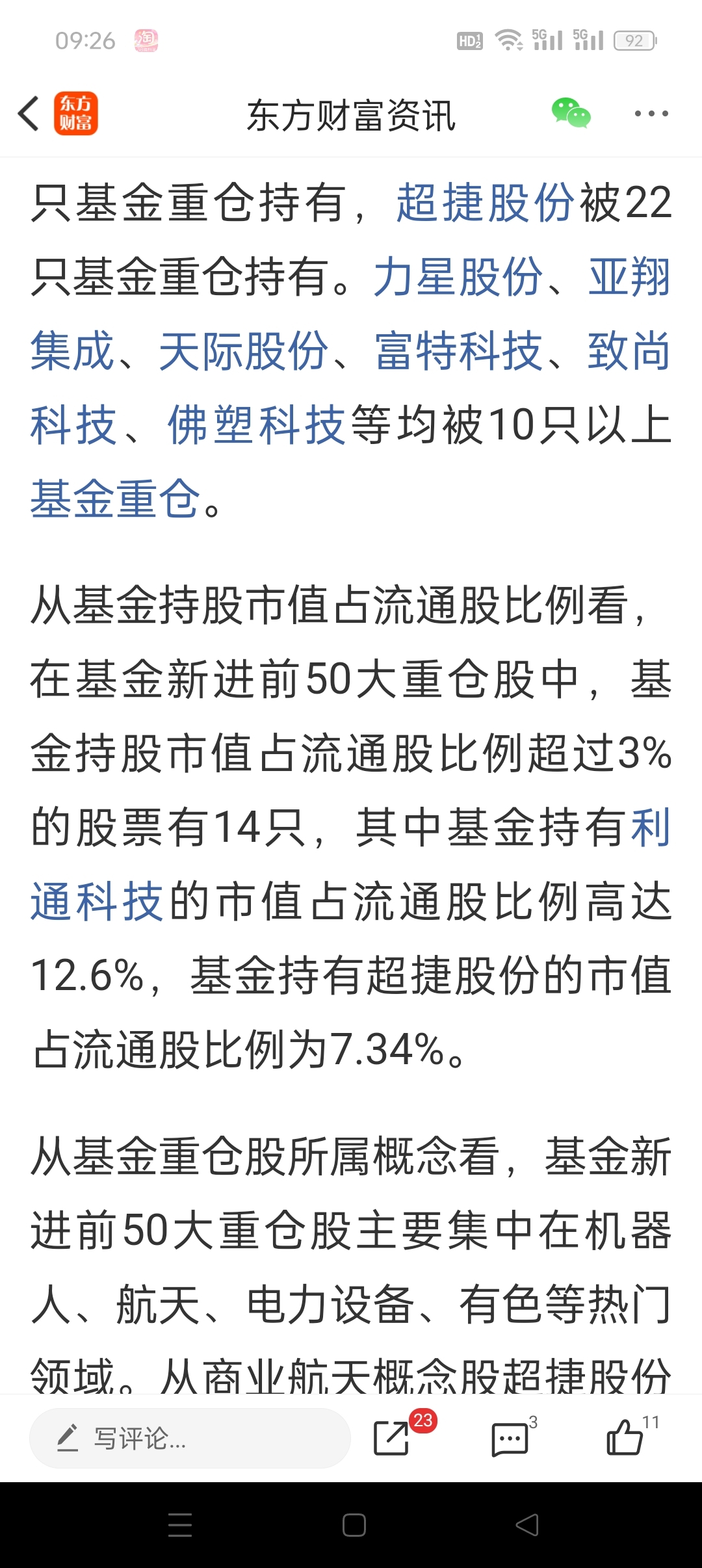 $超捷股份(SZ301005)$ 超姐真牛,太多基金持有她,超姐被22家基金重仓持有。