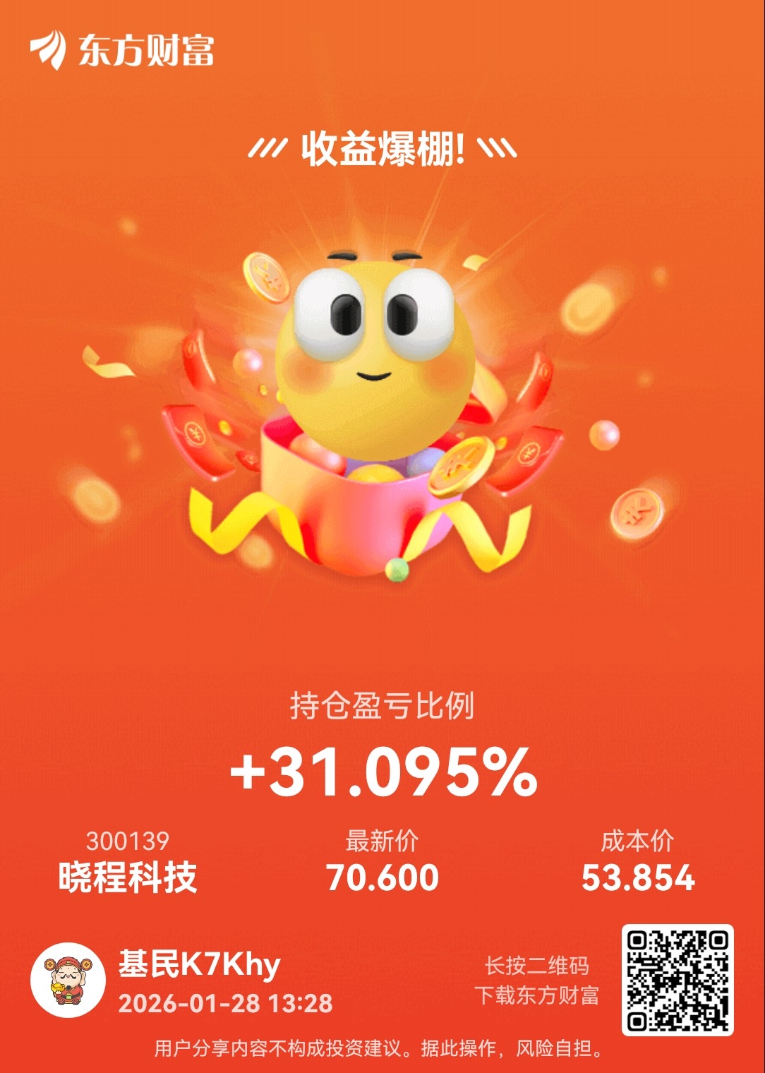 温馨提示: 1.根据《证券法》规定,禁止编造、传播虚假信息或者误导性信息,扰乱证券市场;2.用户在本社区发表的所有资料、言论等仅代表个人观点,与本网站立场无关,不对您构成任何投资建议。用户应基于自己的独立判断,自行决定证券投资并承担相应风险。《东方财富社区管理规定》
