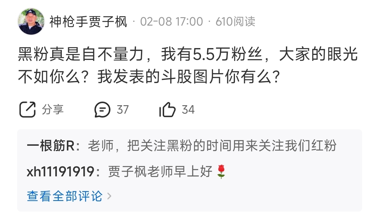 黑粉远大于5.5,你知道吗,还整天呵呵的,一涨你就吹