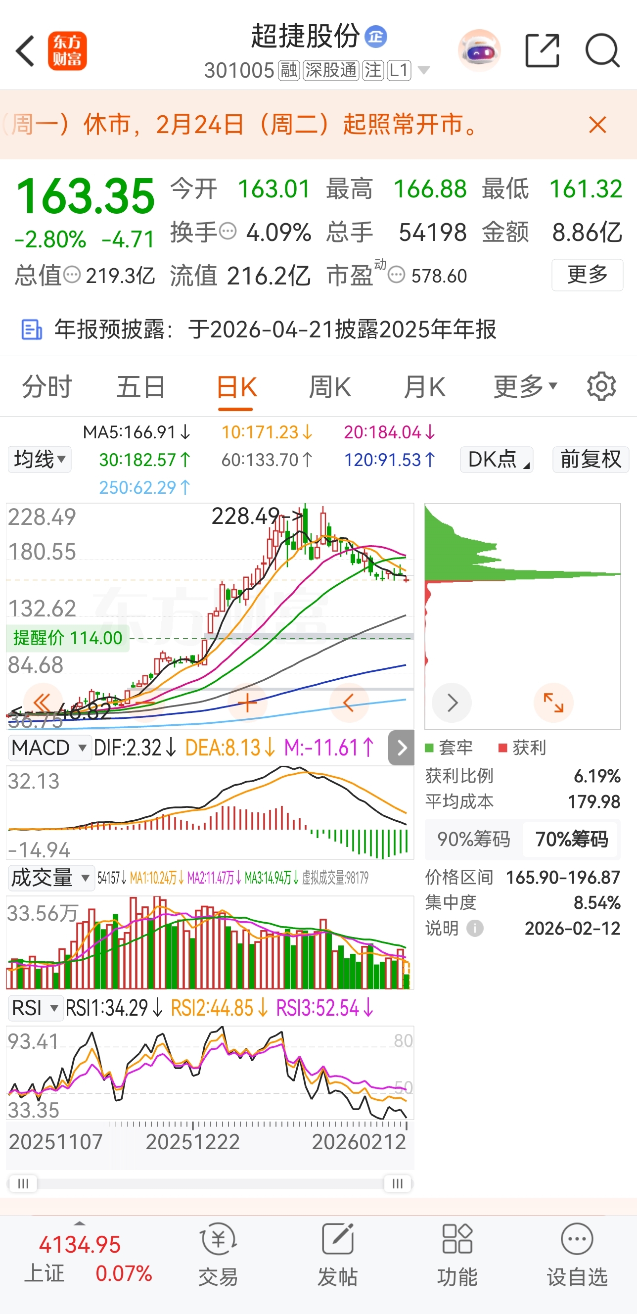已经涨了10倍的股,起码回调50%以上,才能进场,先看回调到114元!!!