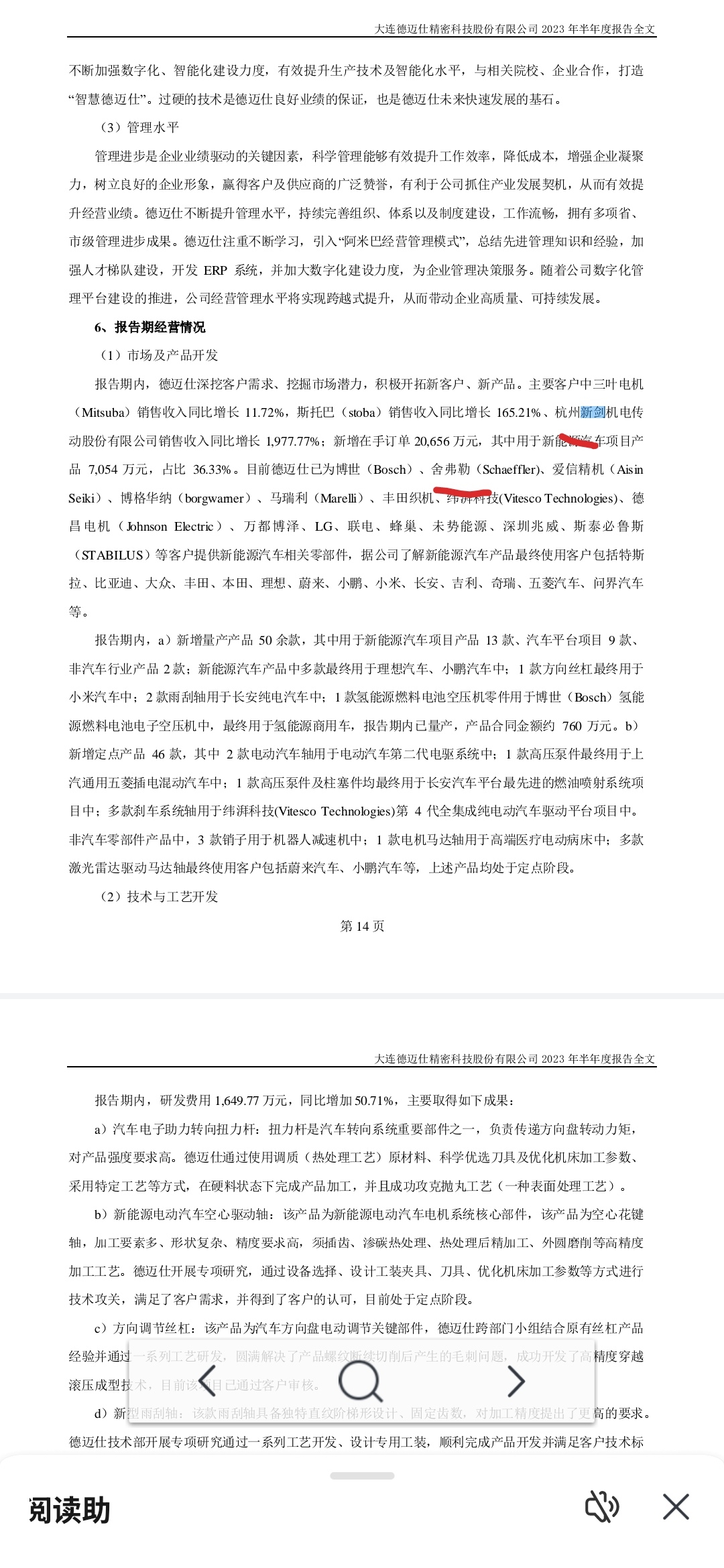 看,德迈仕生产高精度滚珠丝杠,然后舍弗勒和新剑是公司主要客户,而这两者是目前重要