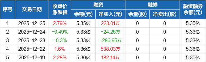 德迈仕:融资净买入223.01万元,融资余额5.35亿元(12-25)