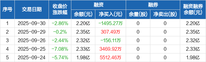 宏昌科技:融资净偿还1495.27万元,融资余额2.2亿元(09-30)