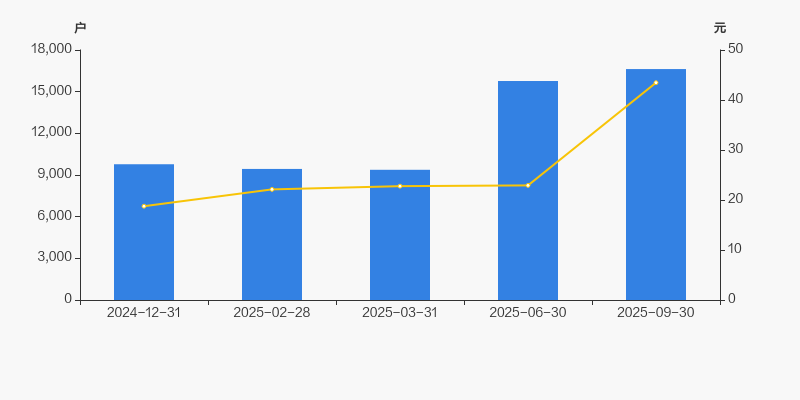 2024年12月31日至今,公司股东户数显著大幅增长,区间涨幅达70.11%。2024年12月31日至2025年9月30日区间股价上涨131.66%。