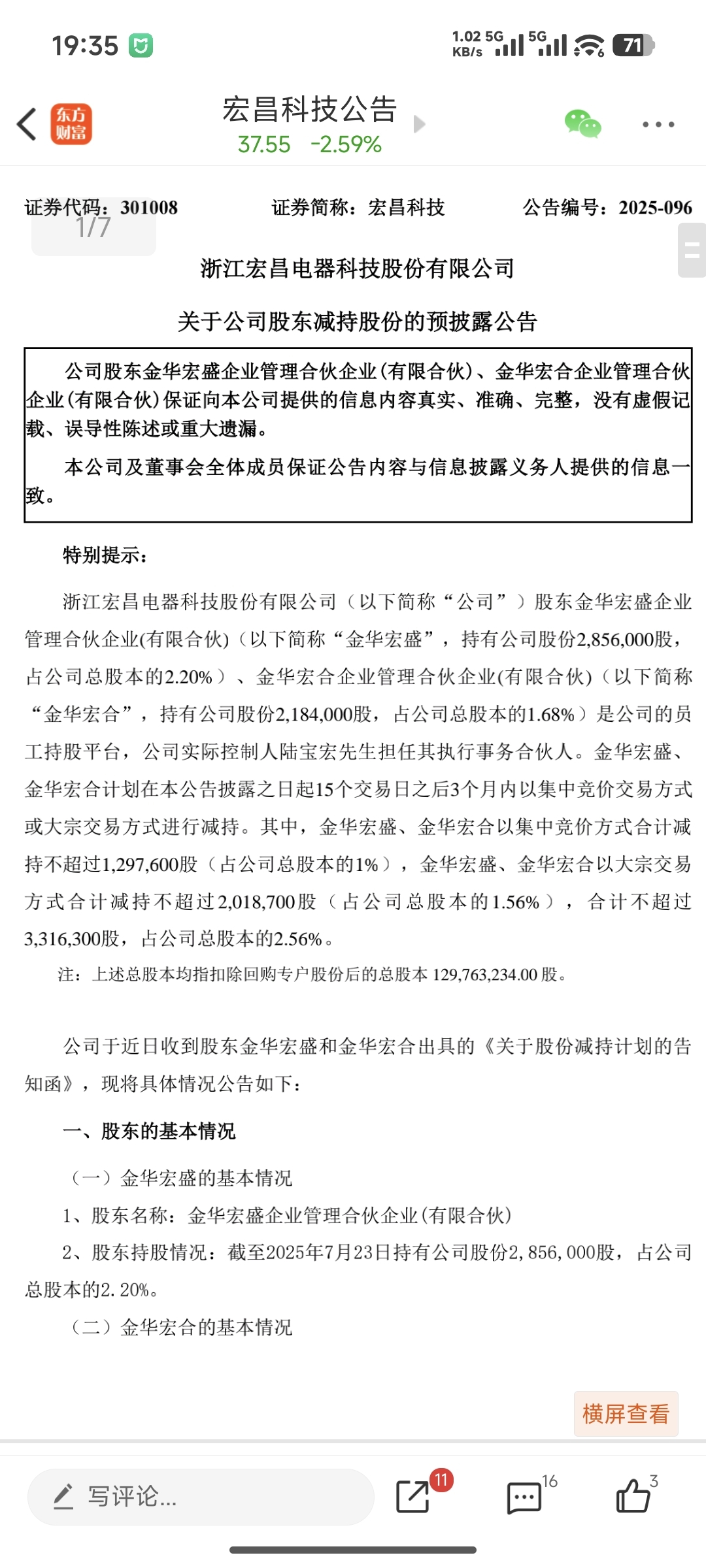 $宏昌科技(SZ301008)$ 最后减持日期。是不是11月3号啊。我50的本啊。还能回本吗