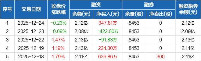 宏昌科技:融资净买入347.81万元,融资余额2.12亿元(12-24)