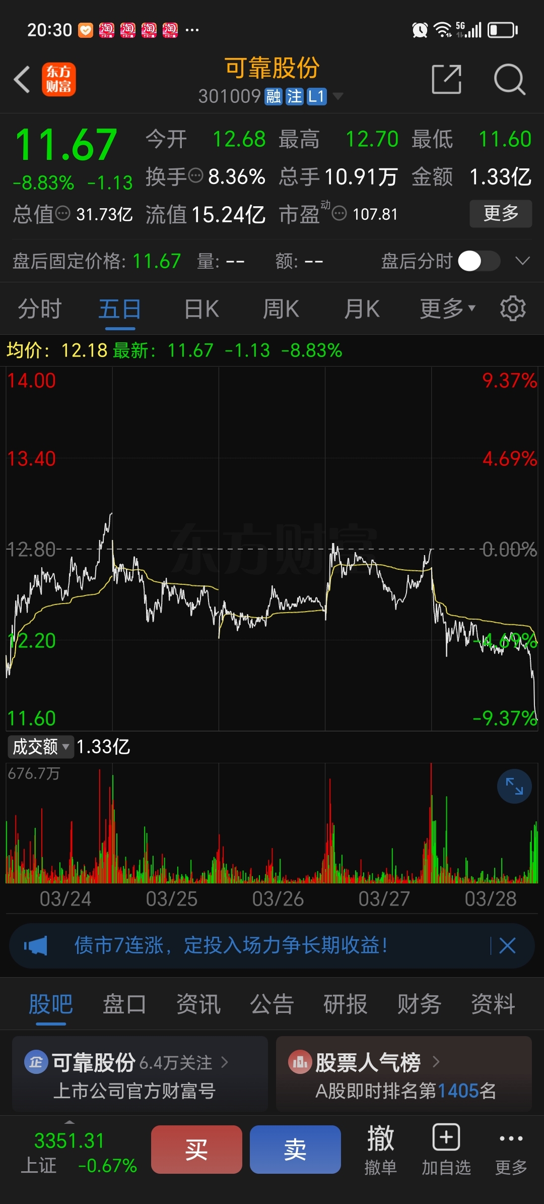 $可靠股份(SZ301009)$