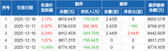 可靠股份:融资净偿还119万元,融资余额8619.64万元(12-18)