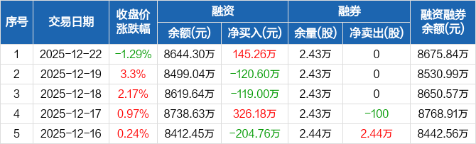 可靠股份:融资净买入145.26万元,融资余额8644.3万元(12-22)
