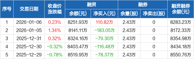 可靠股份:融资净买入110.82万元,融资余额8251.93万元(01-06)