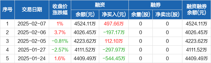 晶雪节能:融资净买入497.66万元,融资余额4524.11万元(02-07)