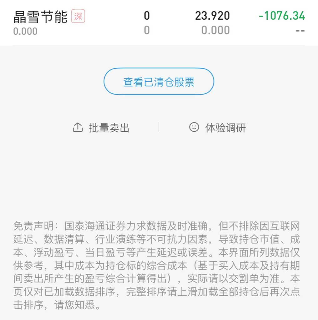 $晶雪节能(SZ301010)$ 亏1000块,拜拜了,主力可以拉升了。