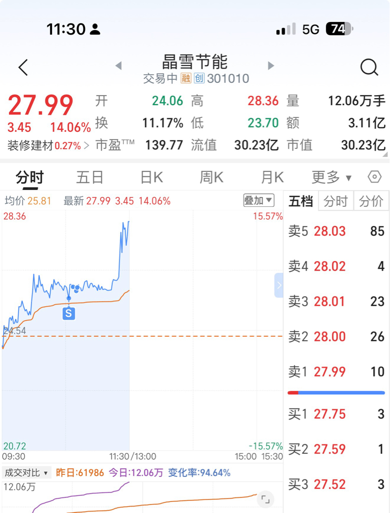 $晶雪节能(SZ301010)$ 想着做T 哭晕