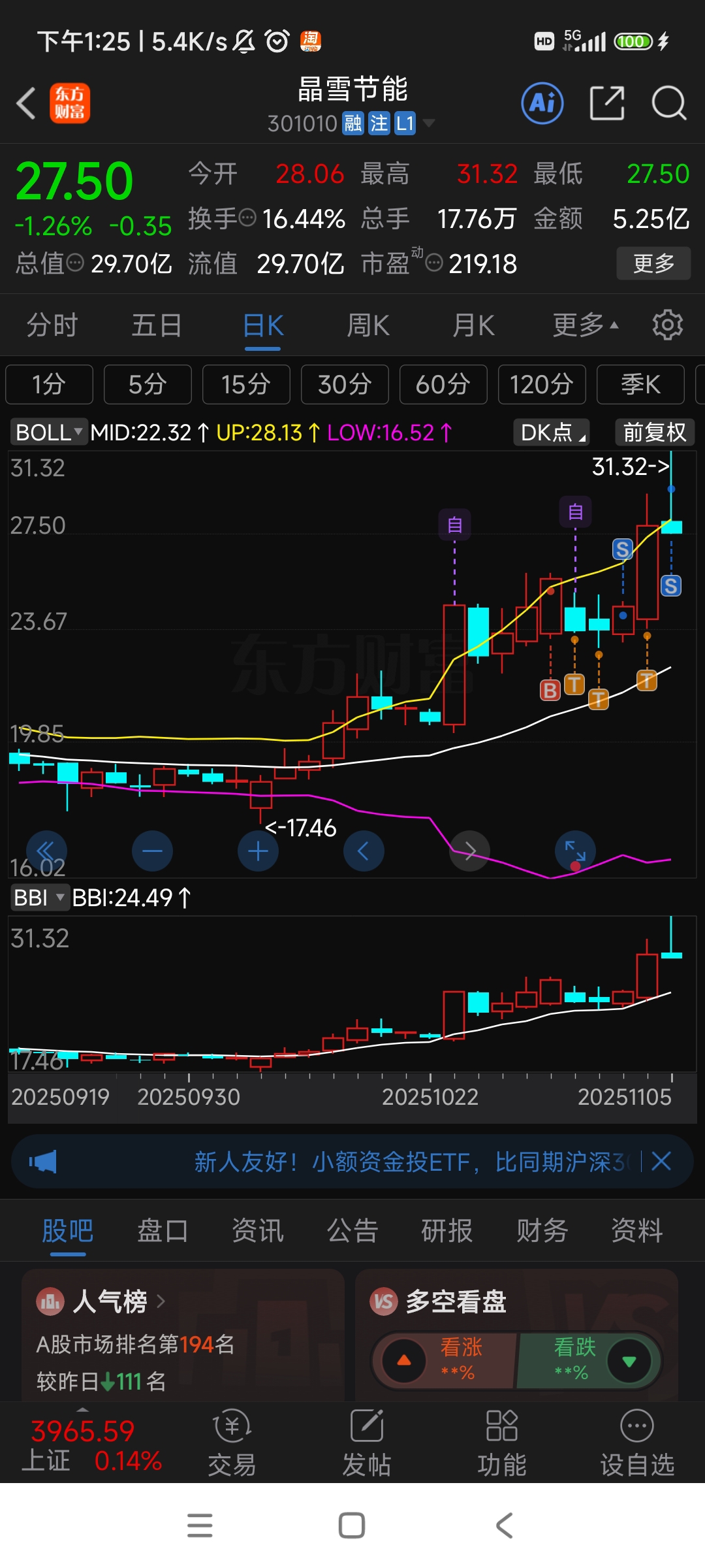 $晶雪节能(SZ301010)$ 先撤了,过几天再回来