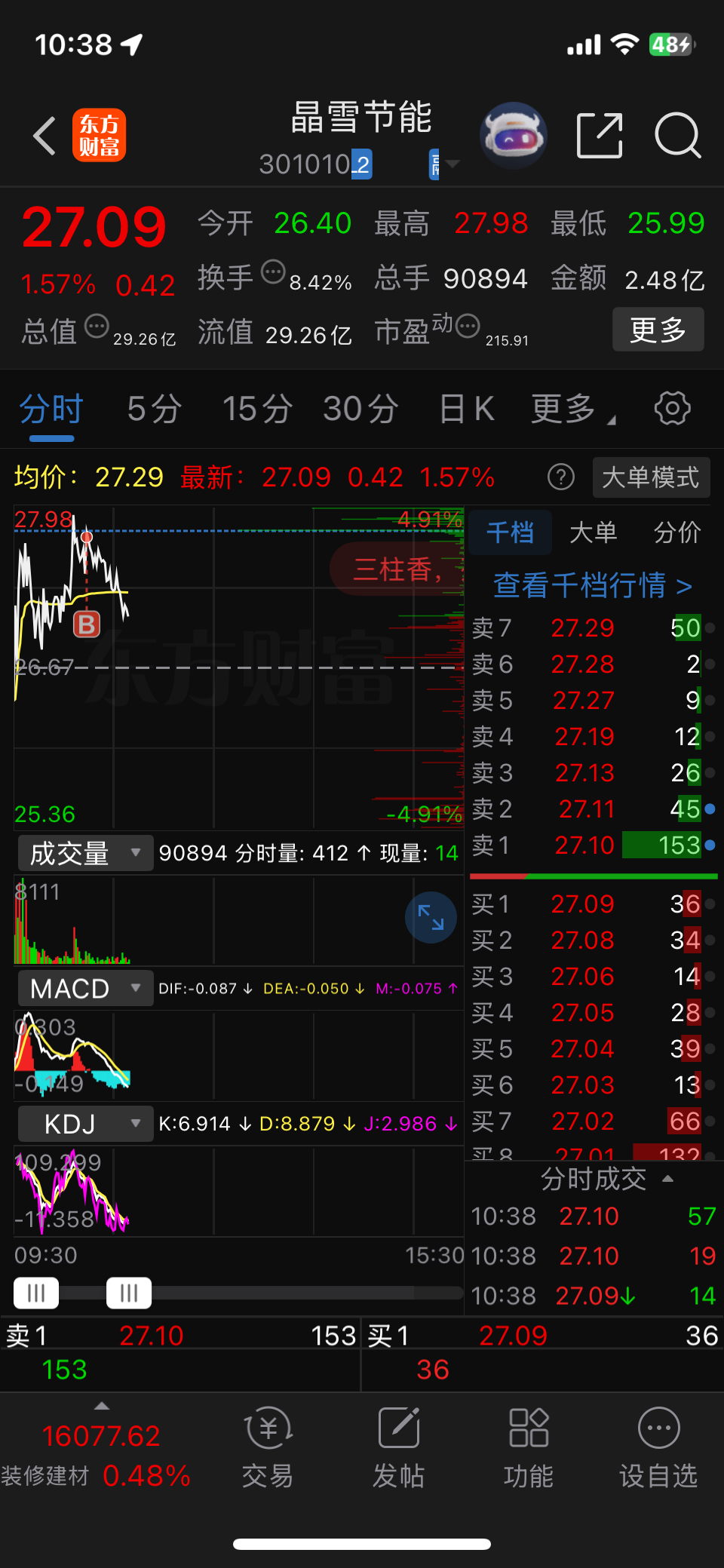 $晶雪节能(SZ301010)$ 对不起大家 是我买崩的