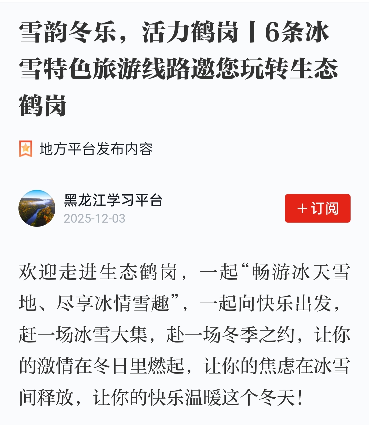 雪韵冬乐,活力鹤岗丨6条冰雪特色旅游线路邀您玩转生态鹤岗