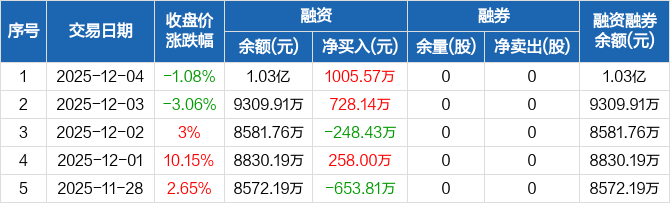 晶雪节能:融资净买入1005.57万元,融资余额1.03亿元(12-04)