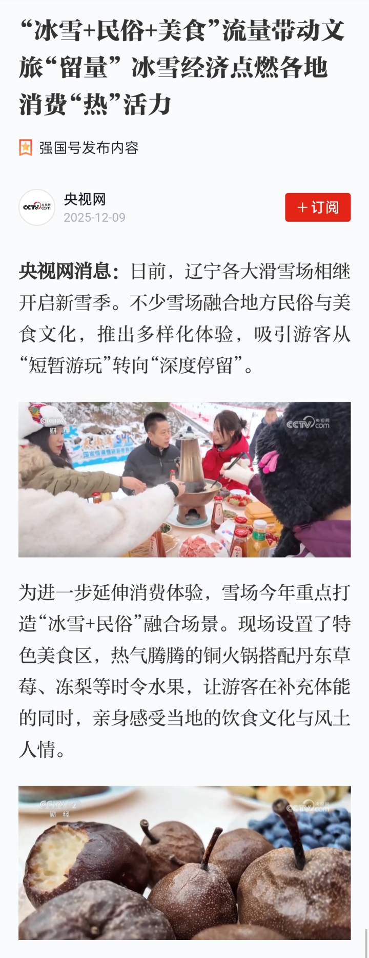 央视网:“冰雪+民俗+美食”流量带动文旅“留量” 冰雪经济点燃各地消费“热”活力