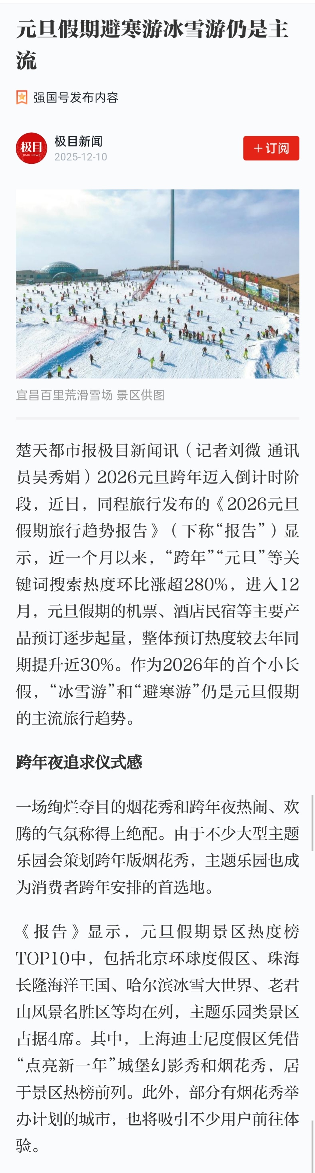 元旦假期避寒游冰雪游仍是主流
