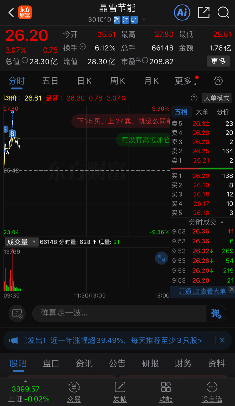 $晶雪节能(SZ301010)$ 荡来荡去荡秋千,敢不敢荡下来?