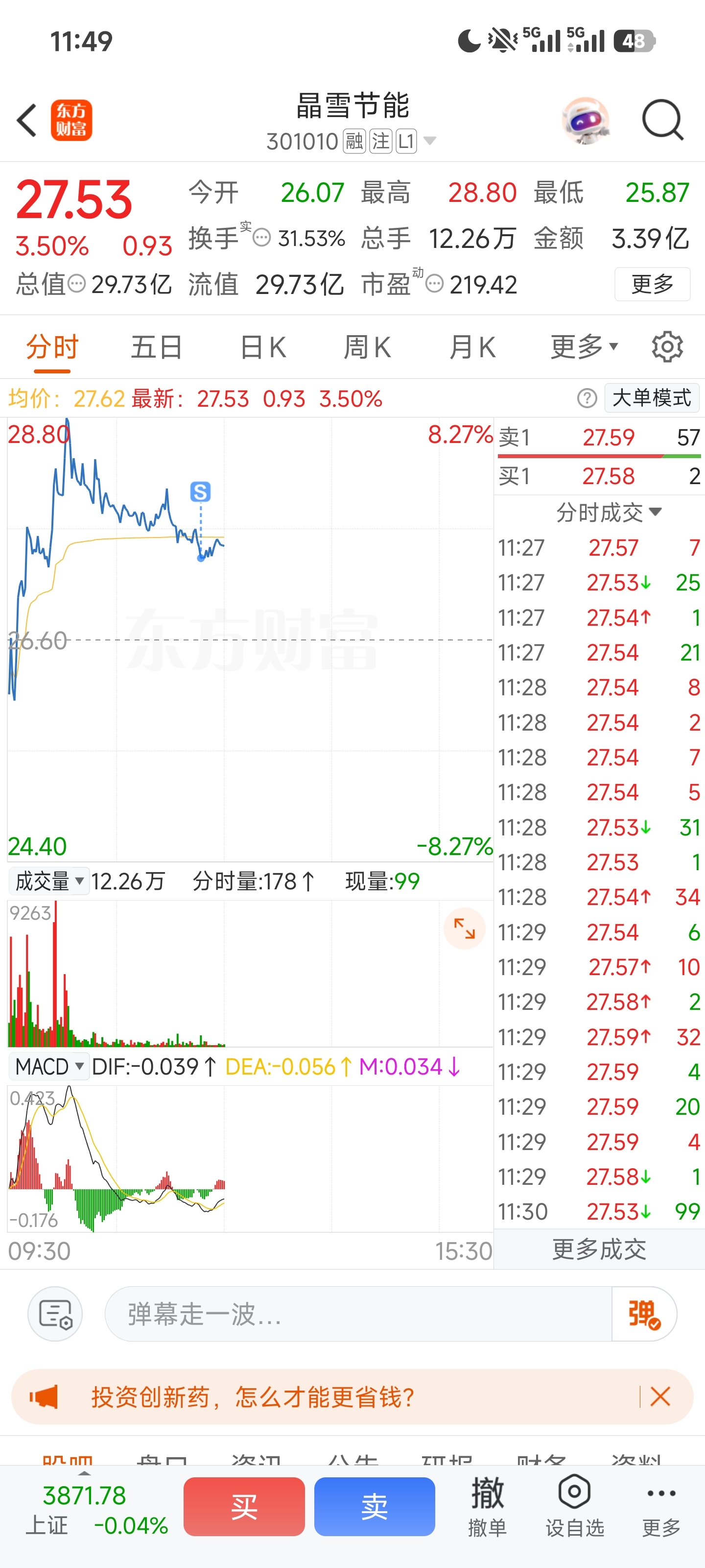 $晶雪节能(SZ301010)$ 没招了,格局你大爷 拉高一直出货,886