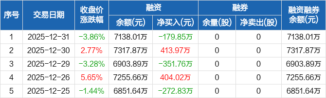晶雪节能:融资净偿还179.85万元,融资余额7138.01万元(12-31)