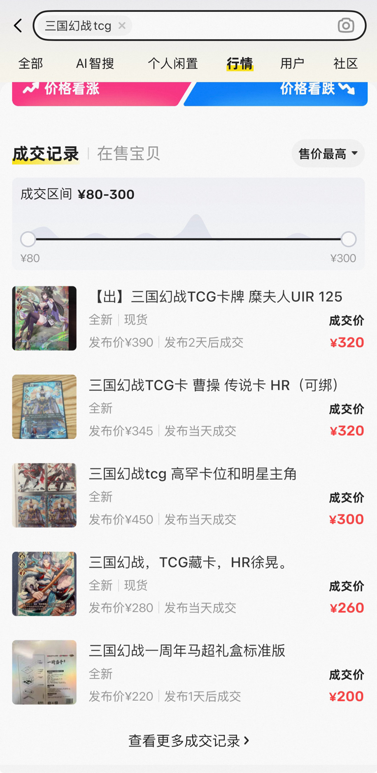 $华立科技(SZ301011)$ 二手平台三国幻战白银传说卡的高阶卡交易记录。有买卖有成交,国内ip有这成绩的不多吧,街机盲盒tcg卡牌最正宗的概念股了,未来半年期待满满。