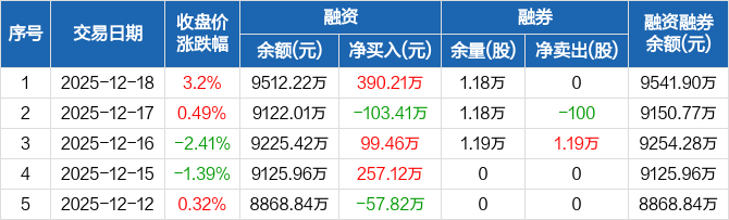 华立科技:融资净买入390.21万元,融资余额9512.22万元(12-18)