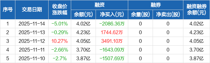 扬电科技:融资净偿还2086.36万元,融资余额4.02亿元(11-14)