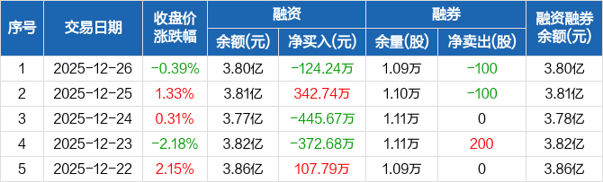 扬电科技:融资净偿还124.24万元,融资余额3.8亿元(12-26)
