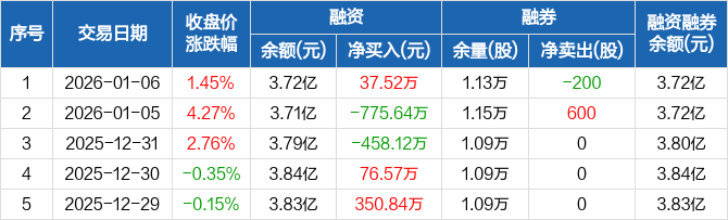 扬电科技:融资净买入37.52万元,融资余额3.72亿元(01-06)