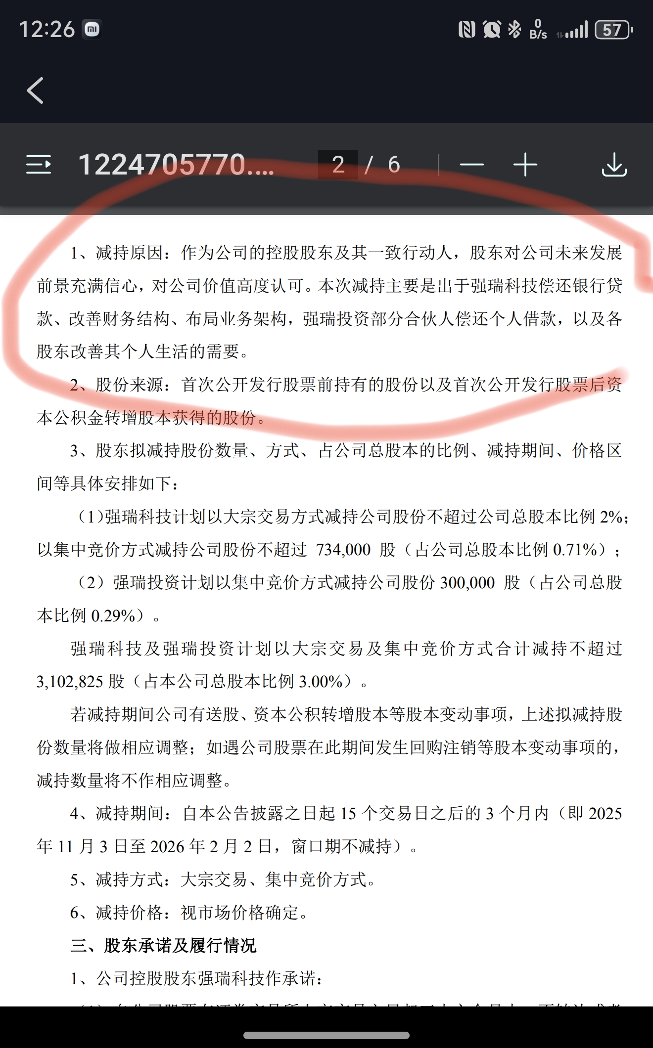 周五发布减持公告,今天被强势拉起,减持原因公司公告说得很清楚了,股东还款/布局新业务/改善生活,我觉得这个减持,更多的是情绪上的利空,一来强瑞技术继上一波作为华链和达链液冷龙头大涨后,已经调整了好长一段时间和空间了;二是真正的减持时间要到三季报发布之后的11月份去了,对近期的盘面资金抛压没有实际影响;三是控股股东的持股比例过高,适度减持,有利于增加市场流动性。