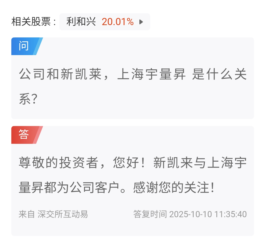 董秘几乎已经明牌告诉,利和兴,不仅实打实有新凯来的8亿订单,还和上海宇量昇有密切