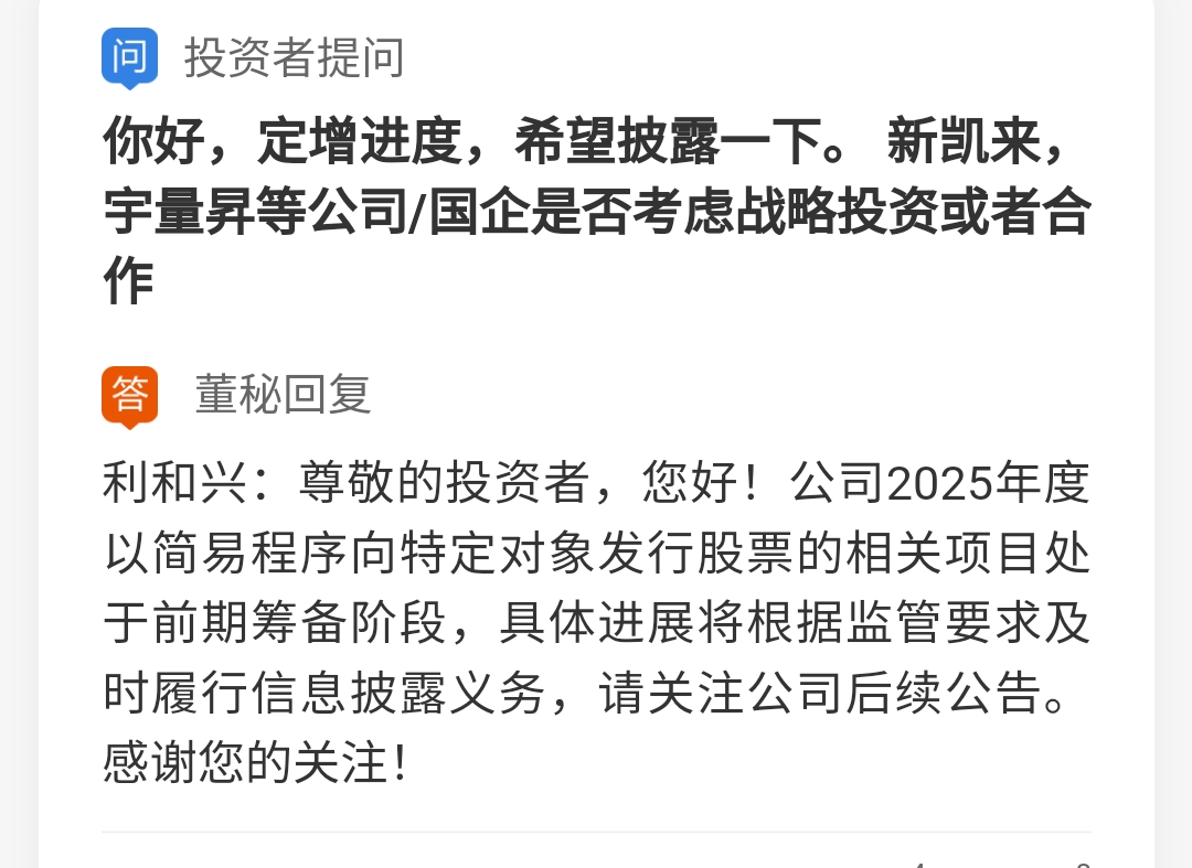 $利和兴(SZ301013)$ $新莱应材(SZ300260)$ 董秘几乎已经明牌告诉,利和兴,不仅实打实有新凯来的8亿订单,还和上海宇量昇有密切合作关系,这个宇量昇市场还没炒作,炒作起来有的飞,近期保密定增,利和兴,新凯来,宇量昇,全三个字,有没有可能就是为了整合并购