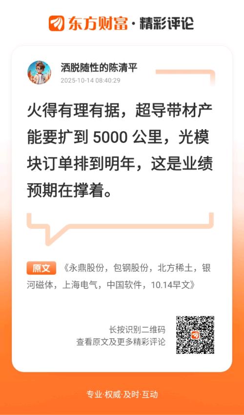 永鼎股份:央视都报道了!核聚变 + 光模块双风口,能不火?永鼎股份最近可是 “风口上的猪”,央视都专门提了合肥 BEST 核聚变项目,10 月 1 日杜瓦底座成功落座,项目进入加速期,2030 年有望点亮第一盏核聚变灯。而永鼎股份早就在这赛道布局,高温超导带材能用于核聚变磁体,还跟国内客户签了合同、交了货,现在正提升产品性能,等于提前占了 “能源终极赛道” 的坑。
