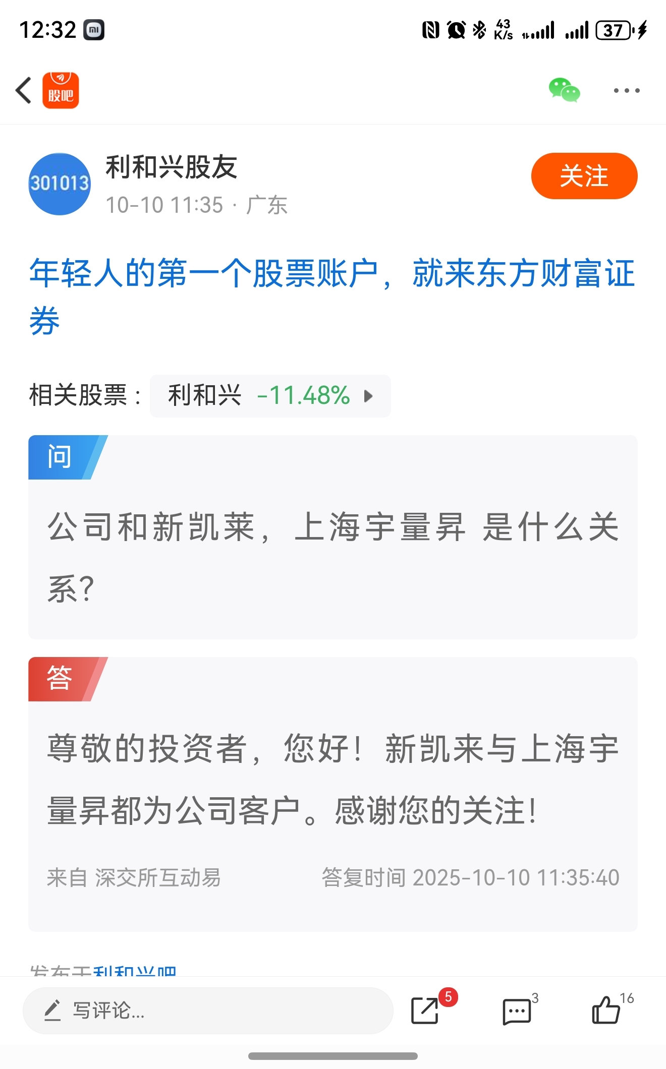 $利和兴(SZ301013)$ 新凯来是负责高端半导体设备的,光刻机整机应该是上海宇量昇负责吧,要发布光刻机也不是新凯来发布吧?所以各位盯着新凯来发布光刻机是不是搞错了$利和兴(SZ301013)$,不过好在,宇量昇也是利和兴的客户吧!还有马上上市的摩尔线程也是利和兴客户!这两天涨多了,回调一下很正常$创业板指(SZ399006)$