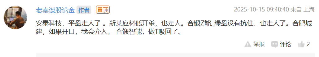 合锻智能:其实会看盘的人应该知道,它竞价是从跌停拉起的,但开盘后却向下,说明既有资J认可同时抛压又很大,两字:纠结。这样的走势适合做反T,老秦在减仓的前提下做了T,但实际上K线和量都比较一般,有一定利R垫,留到明天再看吧,毕竟核聚变是新题材和十五五规划之一,后市反复机会还是有的。