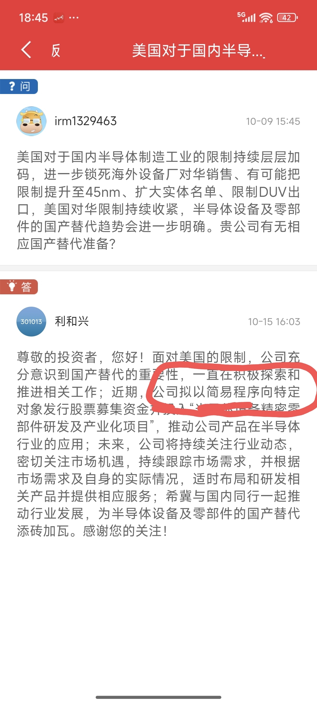 $利和兴(SZ301013)$ 定增很快落地,董秘今天用了简易程序字样