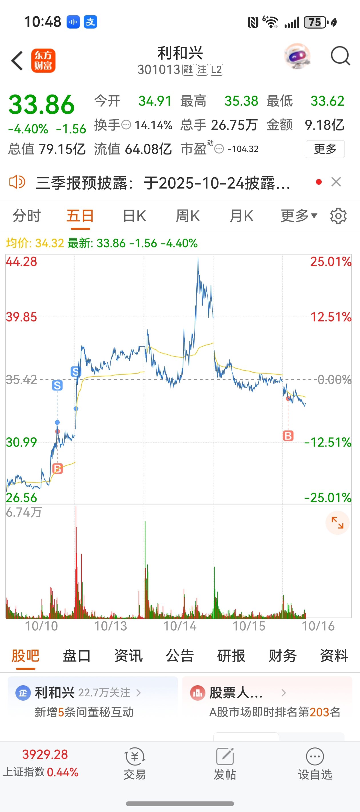 $利和兴(SZ301013)$ 不要啊 我前期没吃到肉 今天进来你又给我吃面了