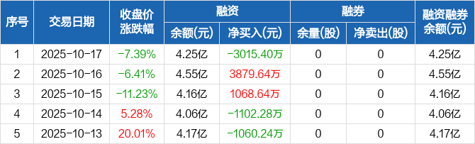 利和兴:融资净偿还3015.4万元,融资余额4.25亿元(10-17)