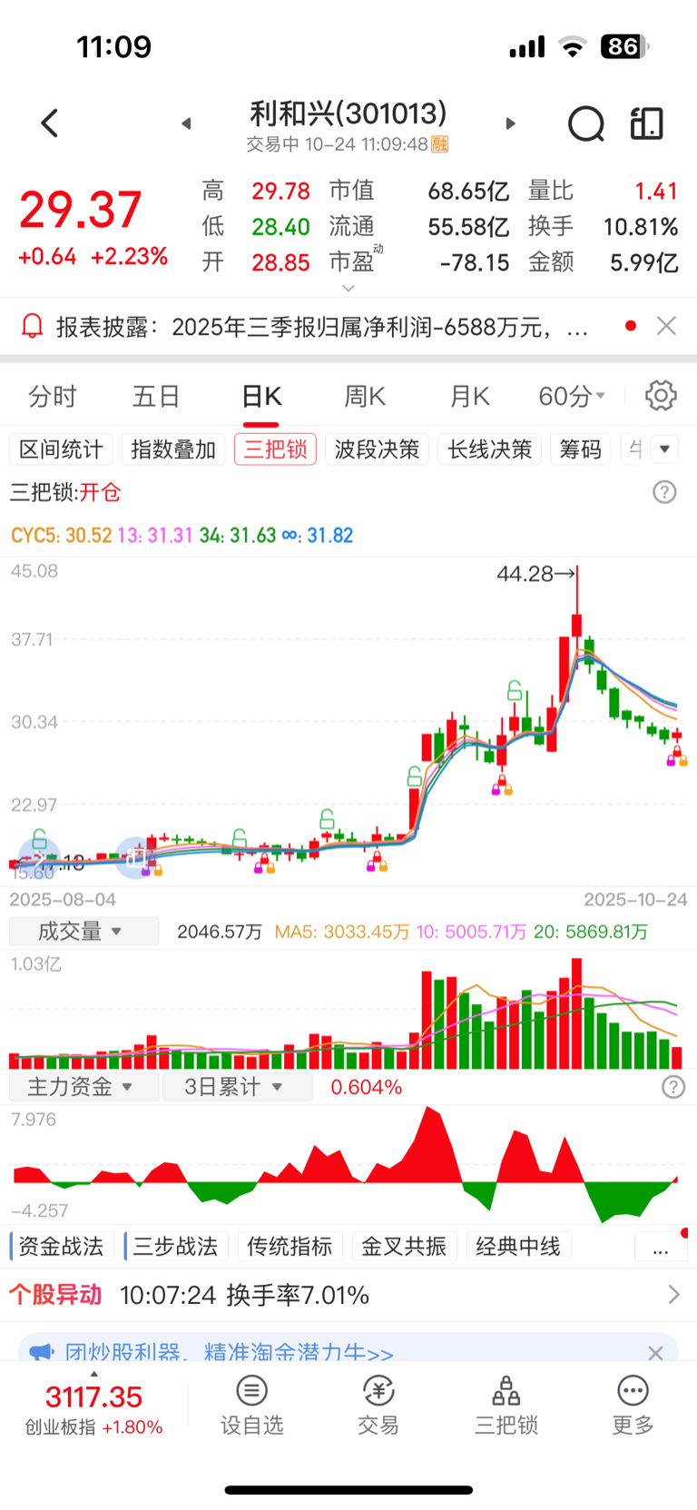 $利和兴(SZ301013)$ 这个三把锁能锁住跌吗?